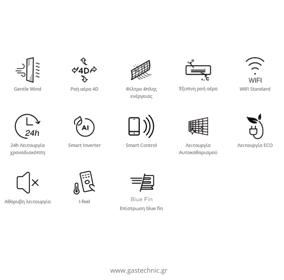 • Τεχνολογία Gentle Wind για δροσιά χωρίς ψυχρά ρεύματα
